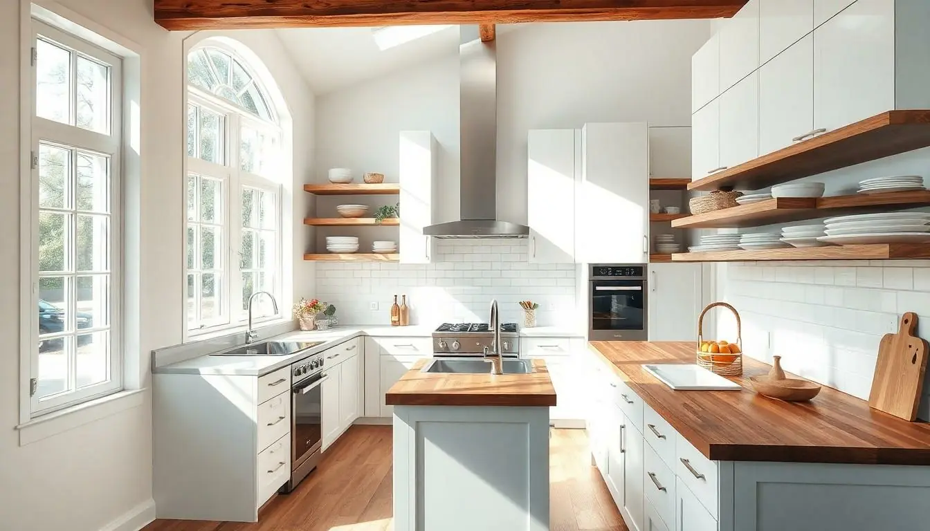 Modern minimalism embraces simplicity and clean lines. White cabinetry paired with sleek countertops creates a serene atmosphere. Open shelving offers a space-saving solution while displaying curated kitchenware. Natural light floods through large windows, enhancing the uncluttered look. High-tech appliances, with their elegant designs, blend seamlessly into this aesthetic. Matte finishes on surfaces add an understated elegance. This style prioritizes practicality while focusing on beautiful, efficient spaces.