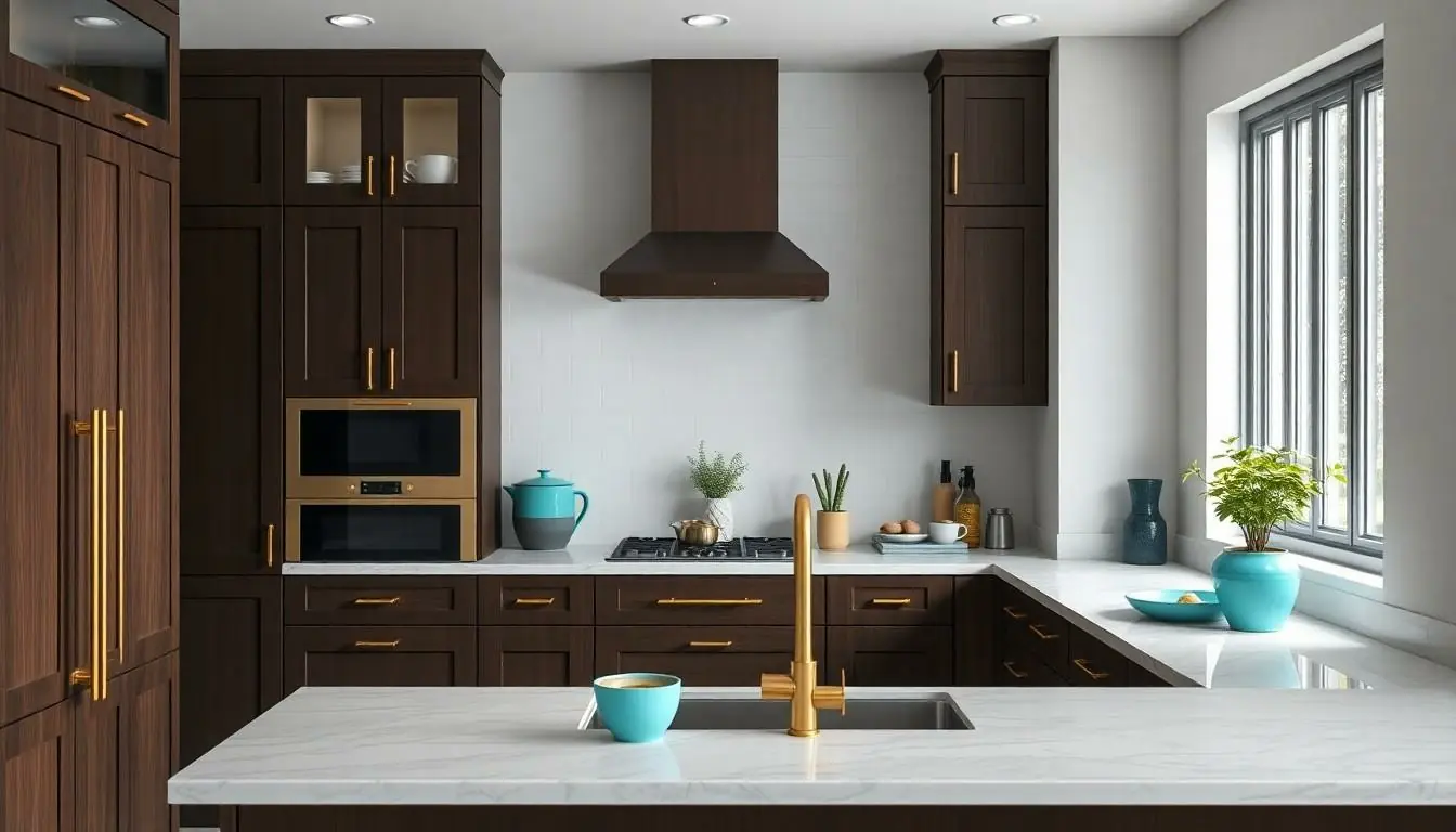 Rich espresso cabinets pair beautifully with carefully selected color combinations. These colors create harmony and balance in the kitchen, transforming it into a welcoming space.